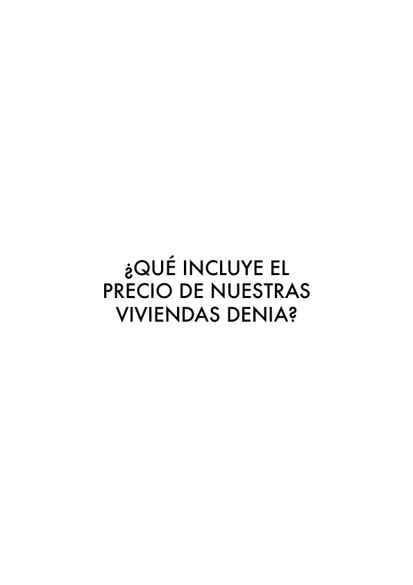 No se incluye en el precio: transporte, los exteriores, piscina, armarios de los dormitorios, mobiliario general, decoración, estudio geotécnico y topográfico, conexión a la red pública de saneamiento, conexión a la acometida de luz y agua y licencia de obra.