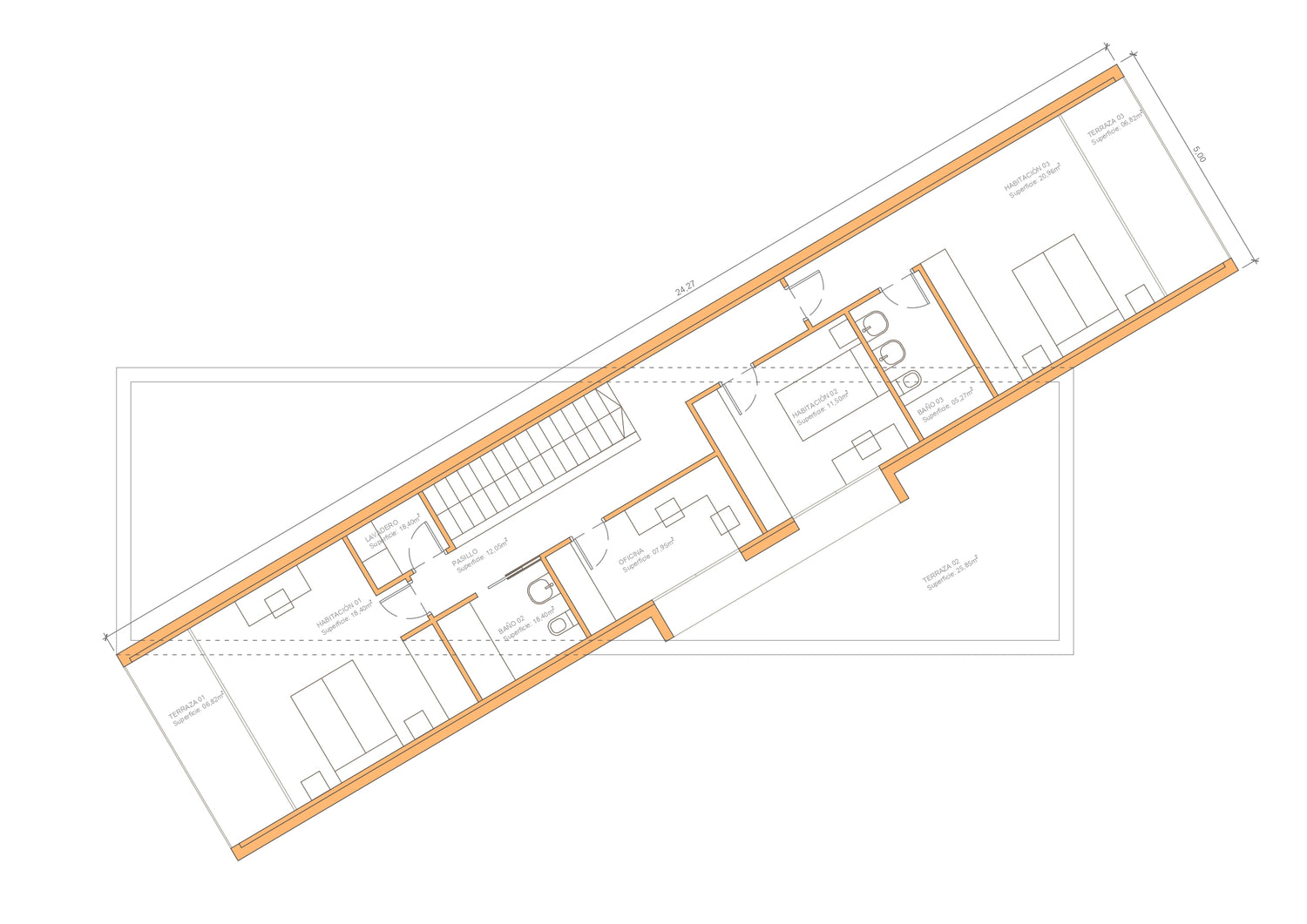En la planta superior se ubican los dormitorios, todos orientados a las mejores vistas de la parcela, dos bañoscompletos, una oficina y tres terrazas transitables, a las cuales, se tienen acceso desde todas las habitaciones de la primera planta.