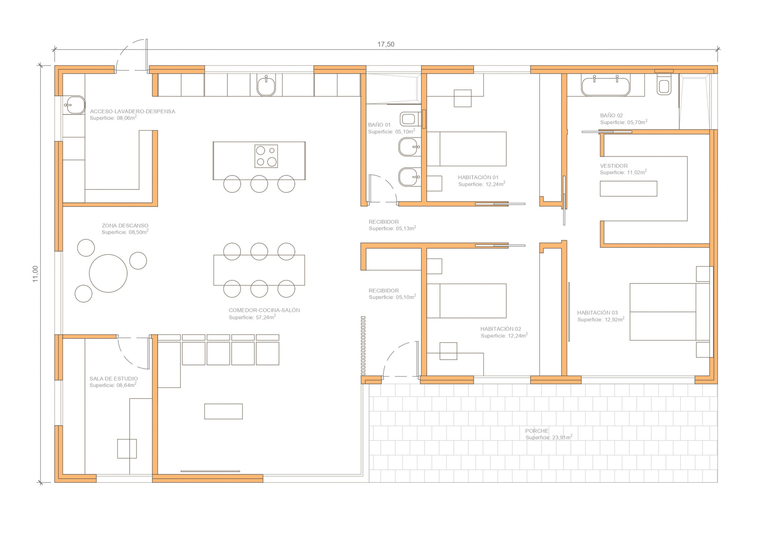 - Proyecto completo de la vivienda: arquitecto, arquitecto técnico, dirección de obra y coordinación de seguridad y salud.
