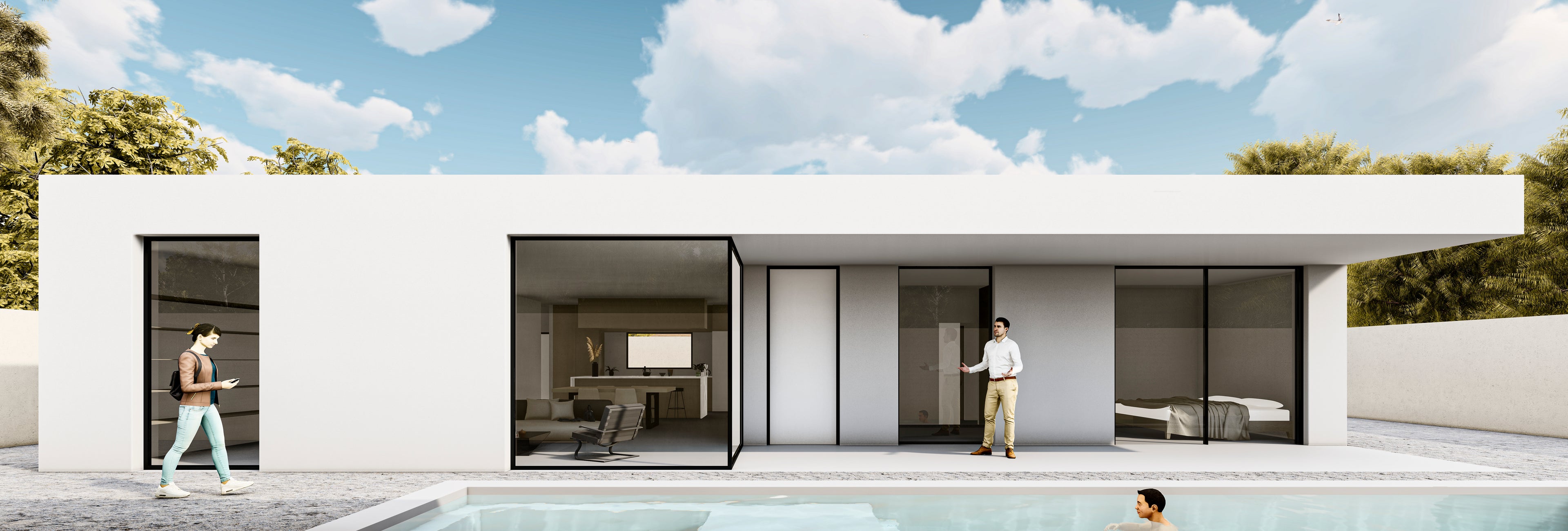 No se incluye en el precio: transporte, los exteriores, piscina, armarios de los dormitorios, mobiliario general, estudio geotécnico y topográfico, conexión a la red pública de saneamiento, conexión a la acometida de luz y agua y licencia de obra.