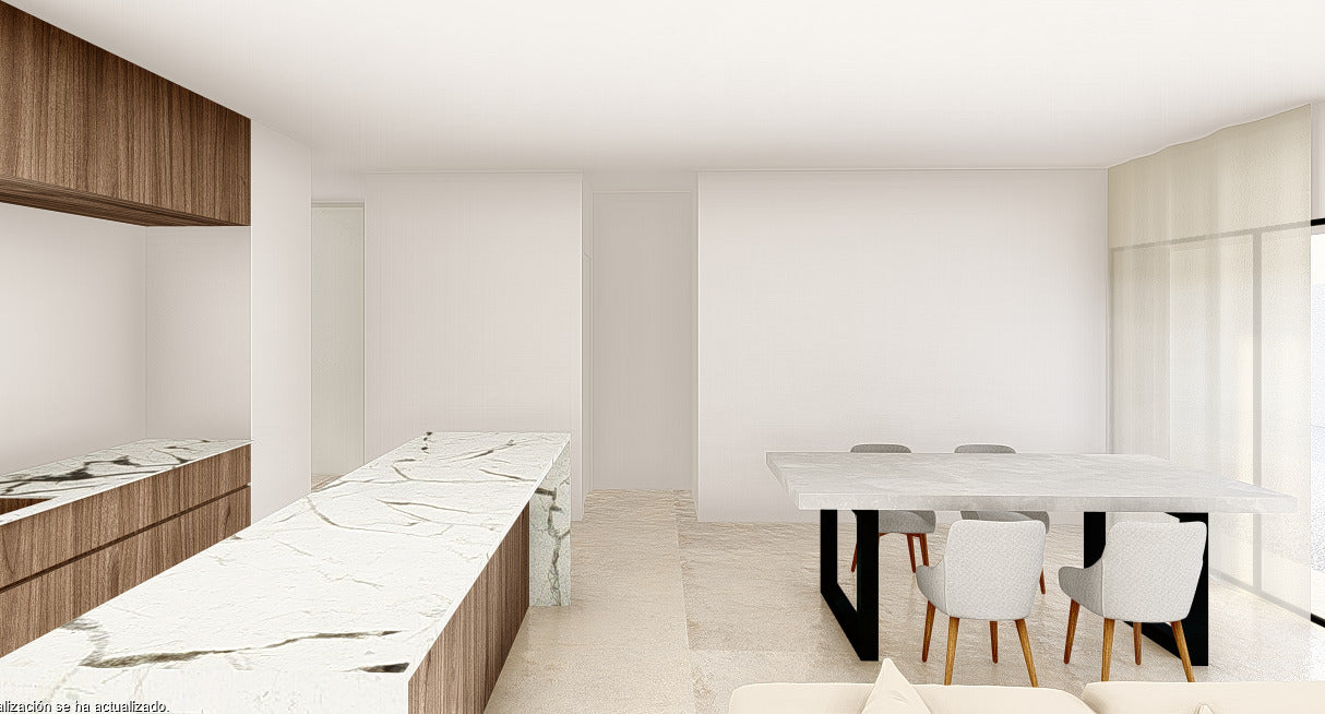 - Cocina: mobiliario e isla (personalizable), campana, vitrocerámica, fregadero y calentador de 100 litros.