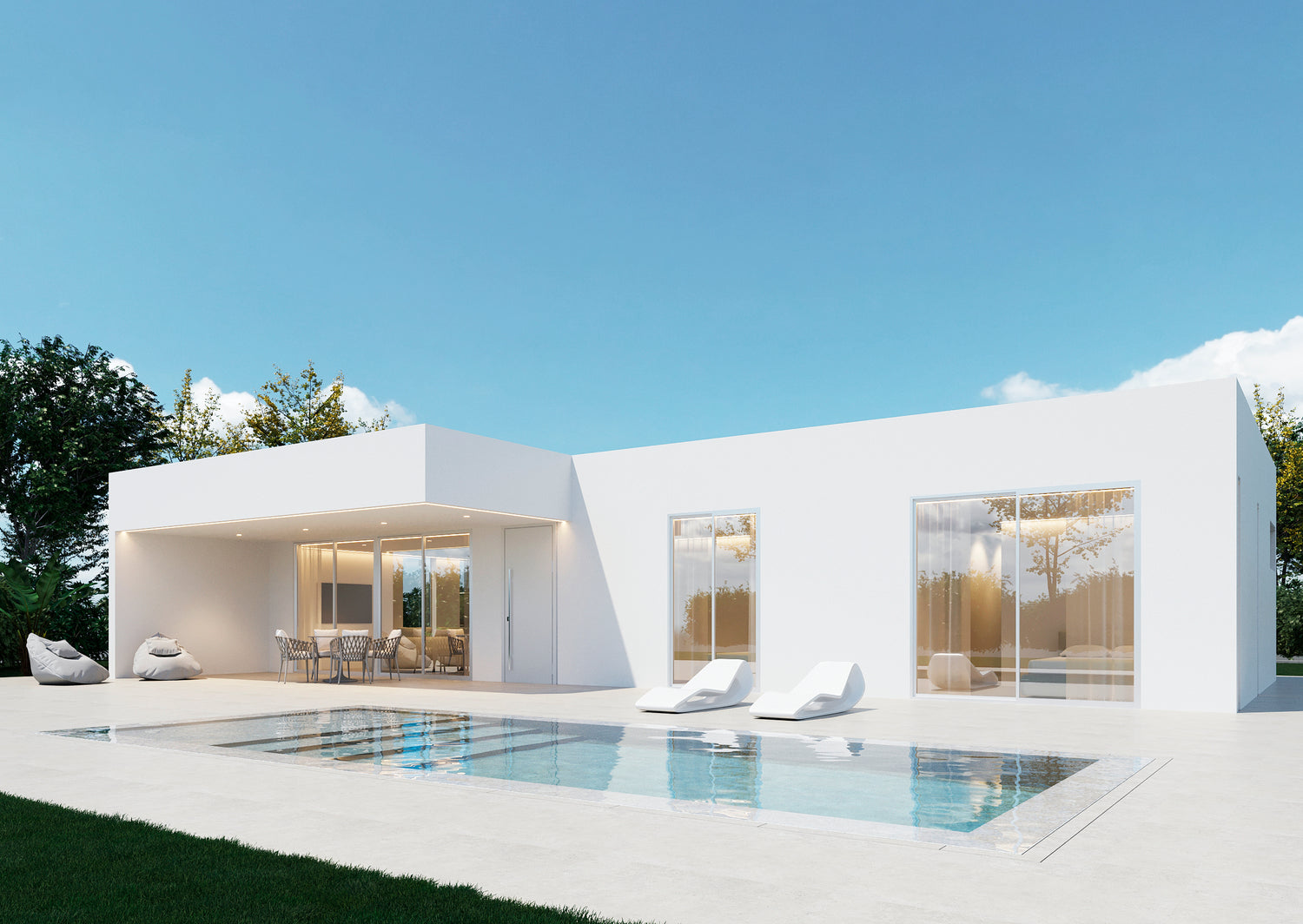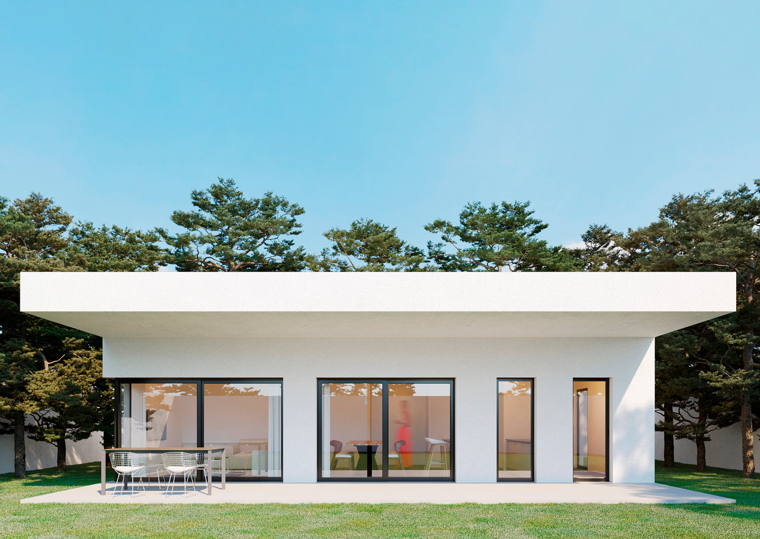 BIANCA es el modelo más minimalista de nuestro catálogo. Este modelo destaca gracias su elegante diseño y sus dos grandes paños acristalados que bañan de luz natural todas las estancias diurnas. Tenemos 1 modelo disponible de 180 m2.